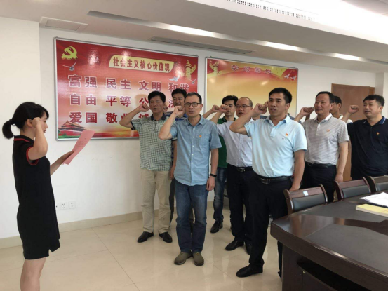 同时,按照“党章学习教育月”活动安排,开展重温入党誓词活动。党员们面向党旗,在一句句庄严神圣的誓词宣读中,再一次接受了党性的洗礼,并用铿锵有力的铮铮誓言,展现了“不忘初心、牢记使命”的坚定信念。